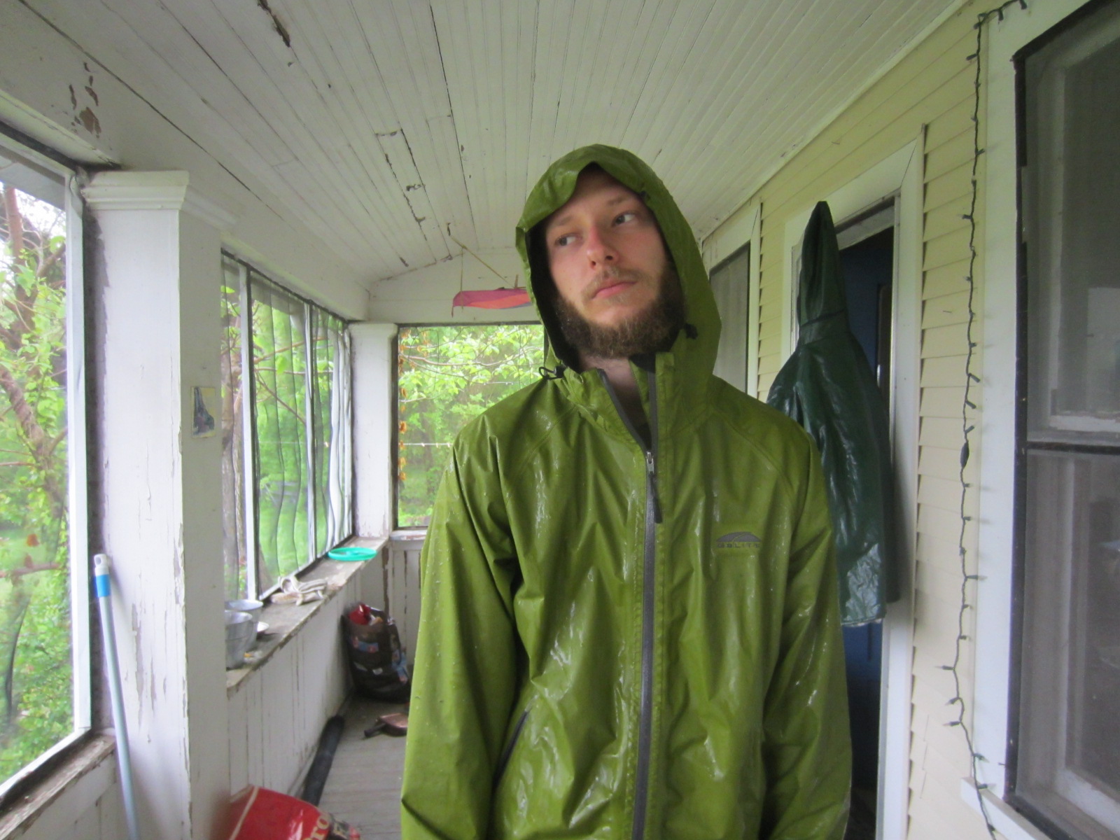 antediluvian back porch with Chunky the raccoon
