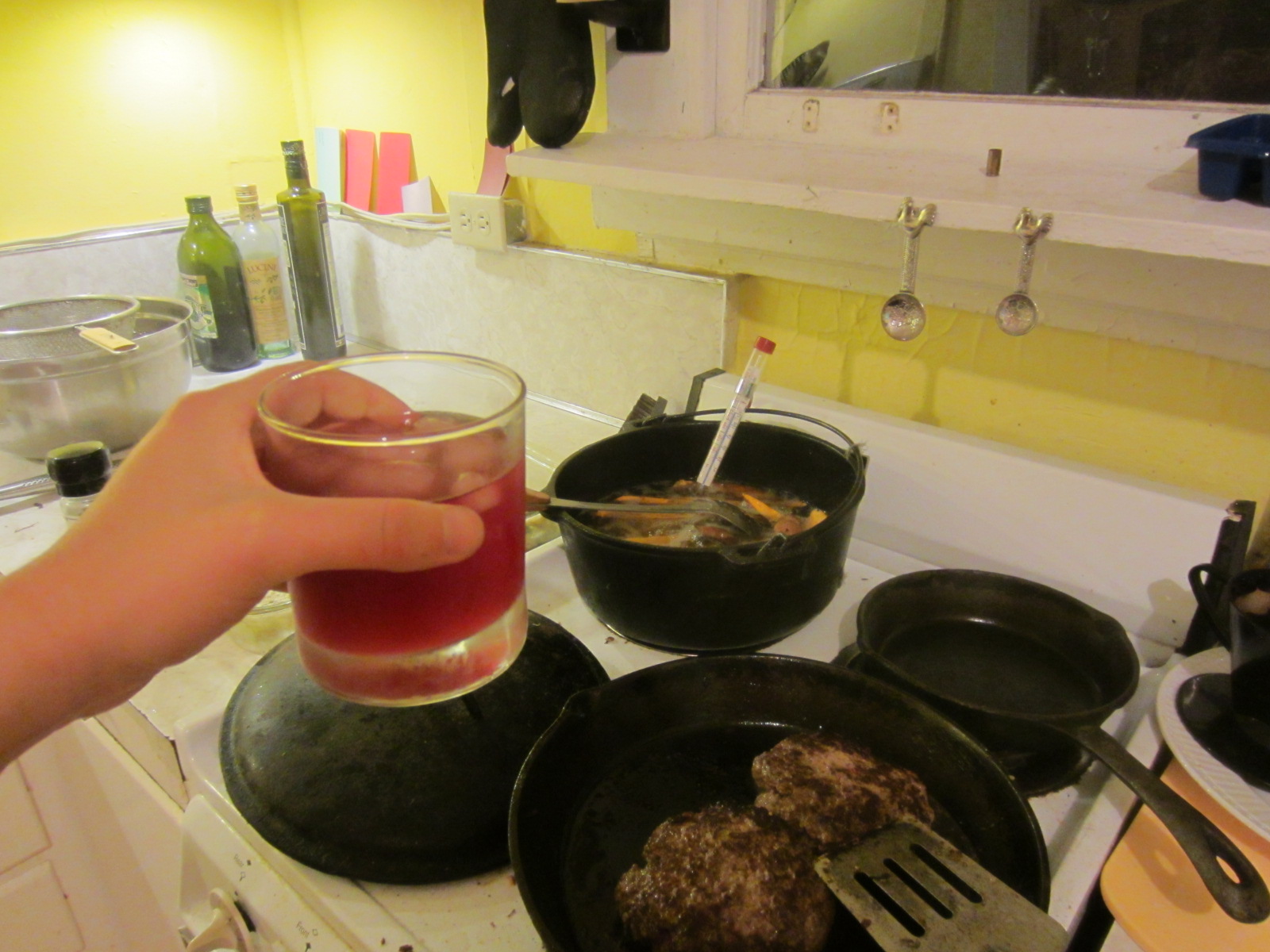 The raccoon that has been raiding our back porch has friends and/or family accompanying him to the buffet now. We’re going to have to start keeping all of our feed in the house, which blows. The varmints are cute, though, and it’s cool to see them out there, fearlessly growing ever fatter on our dime. Tonight, we heard squealing out front and went to check on the pigs, only to discover a raccoon brawl in a treetop beside the house.